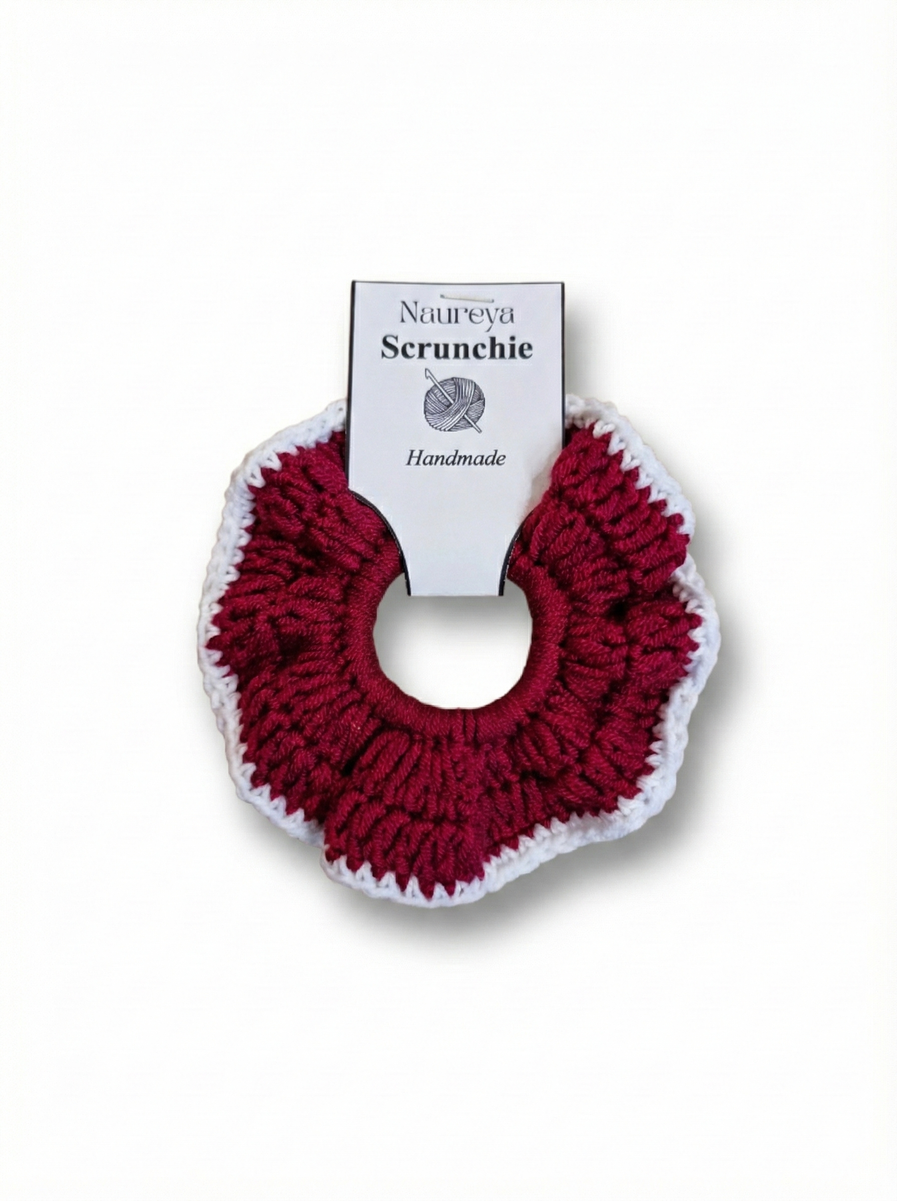 Keep your hair in style with the Lilo Scrunchie, a charming handmade crochet accessory crafted from soft cotton. Featuring a rich maroon base with delicate white edges, this playful hair tie adds a pop of color to any look. Perfect for everyday wear, workouts, or keeping your locks in place during busy days. Each piece is lovingly made by hand, making it a unique addition to your hair care collection.